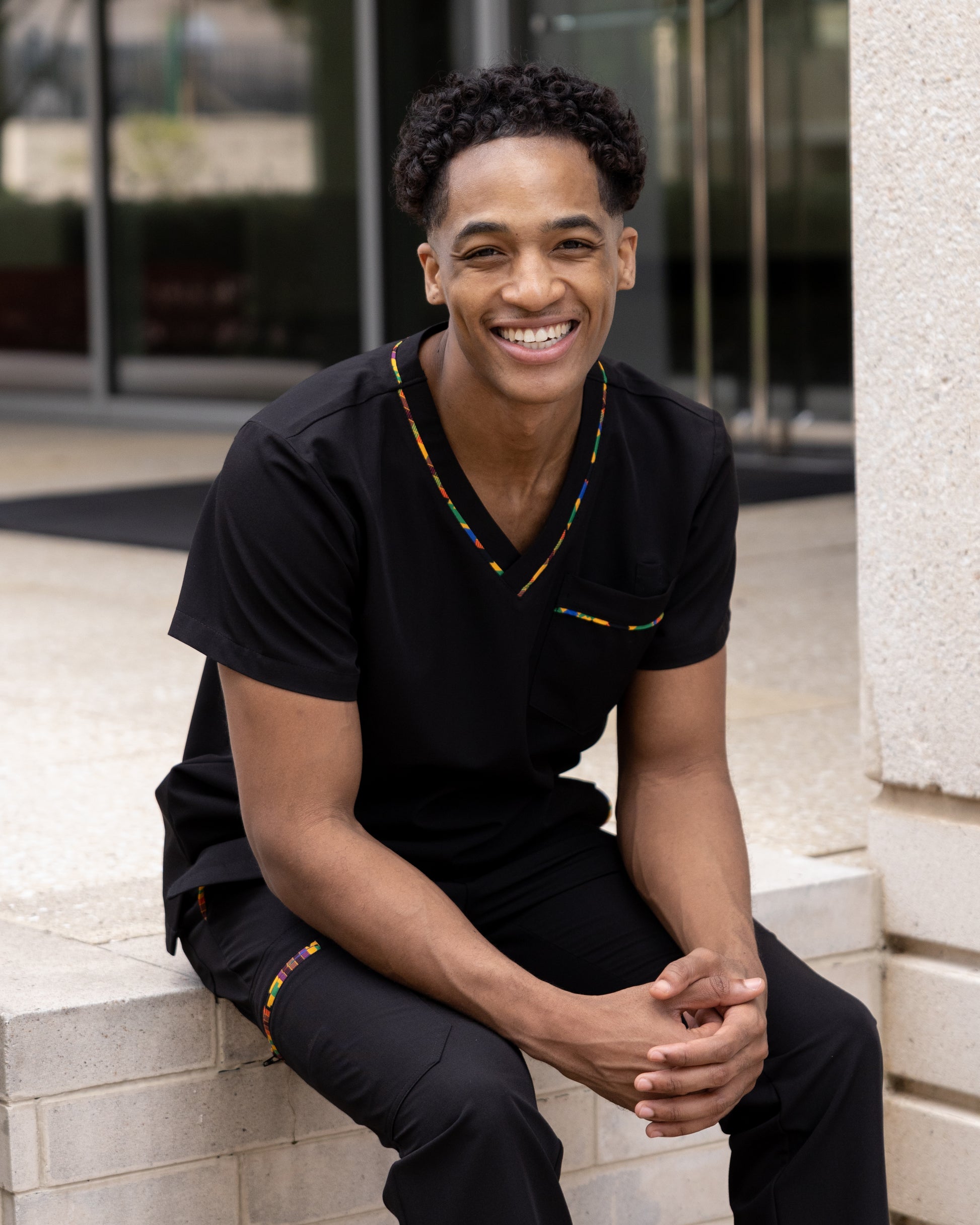 The Heritage Pop Men's Scrub Set with Pants in Black brings together everything you need for a cohesive, confident workday. This three-piece bundle pairs our signature geometric print across your top, pants, and cap—statement style that's professional, not loud.